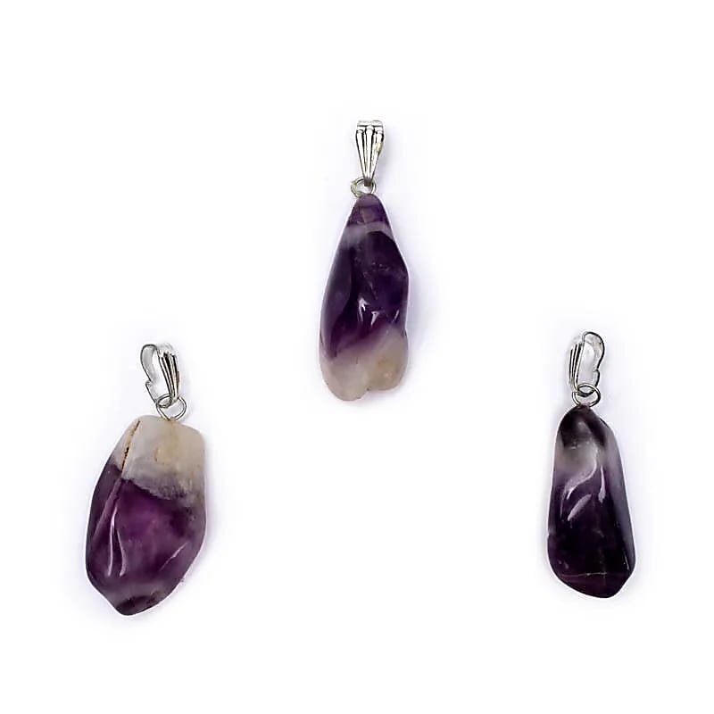 Chevron-Amethyst ist eine Kombination aus Milchquarz und Amethyst. Es ist ein kraftvoller Stein, der das dritte Auge öffnen, entspannen, beruhigen und einen ruhigen Schlaf fördern soll. **