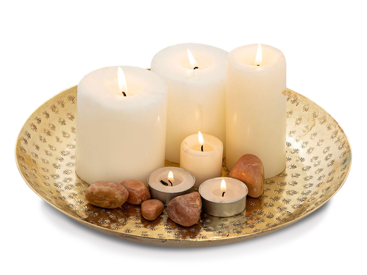 - - Kerzentablett mit einem Durchmesser von 40 cm in den Farben versilbert oder vergoldet (ohne Dekoration)