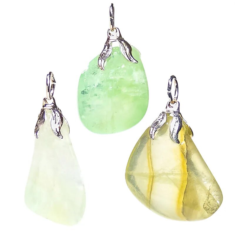 Grüner Calcit Edelsteinanhänger A Qualität. Mit geklebter Metallöse.