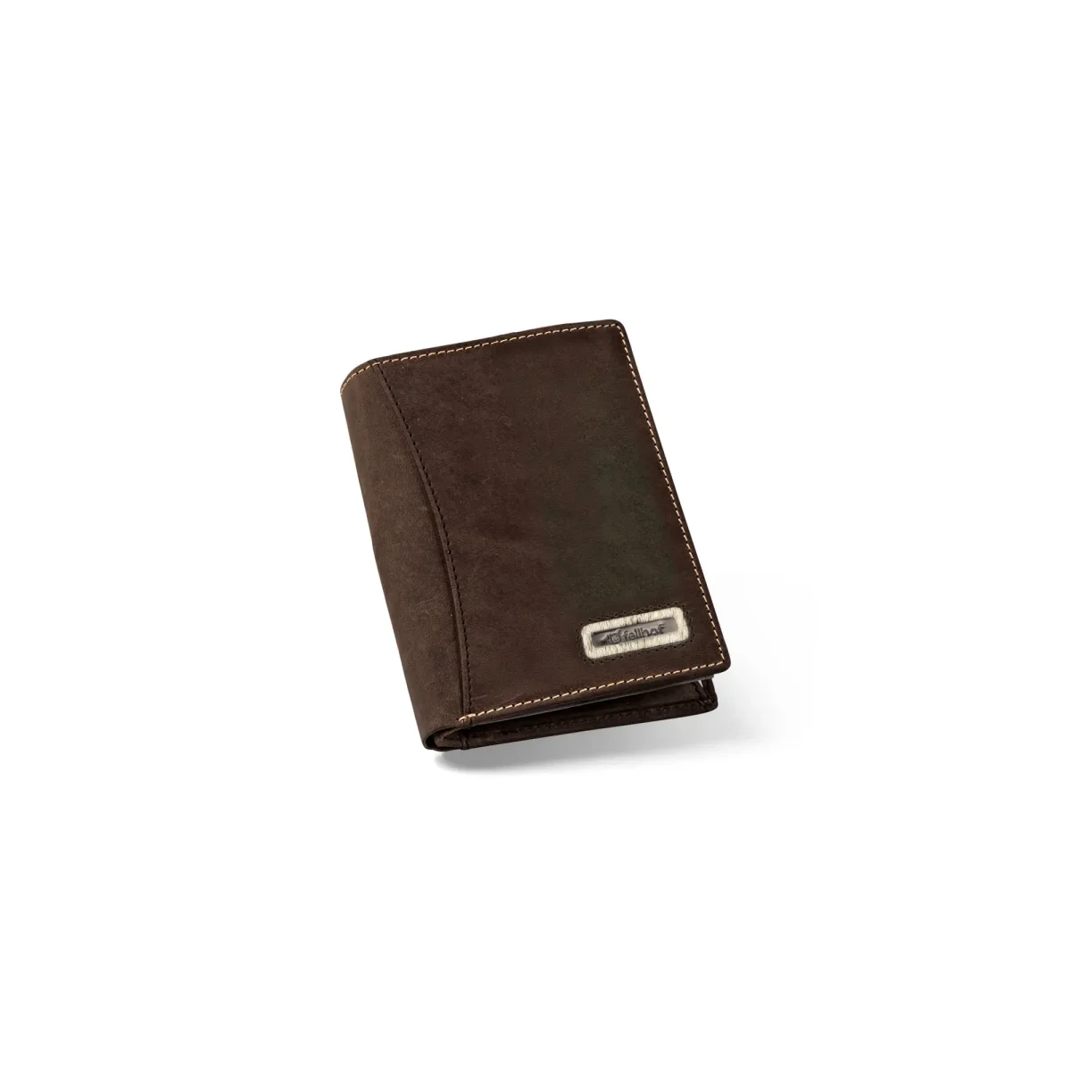 Die schlichte Ledergeldtasche für Herren aus 100% Premium-Leder bietet Platz für alle wichtigen Dinge. Geldscheine kannst du in zwei Fächern und Kleingeld im Münzfach mit Druckknopf verwahren. Die Herrengeldtasche im Hochformat ziert eine Kuhfell-Design Applikation, welche jede Brieftasche zu einem individuellen Unikat macht.
