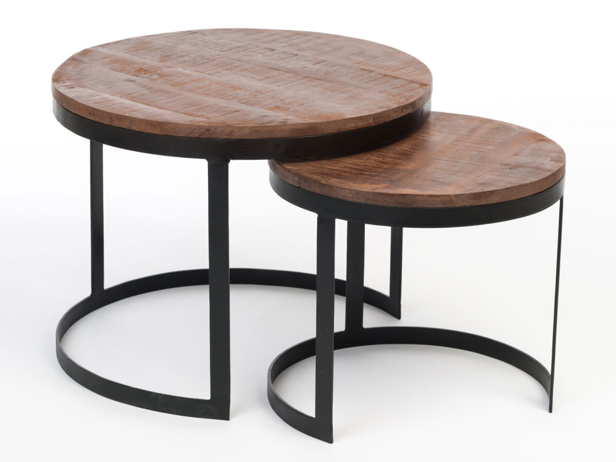 - Couchtische Massivholz rund im 2er Set mit pulverbeschichtetem Metall-Gestell altsilber o. schwarz