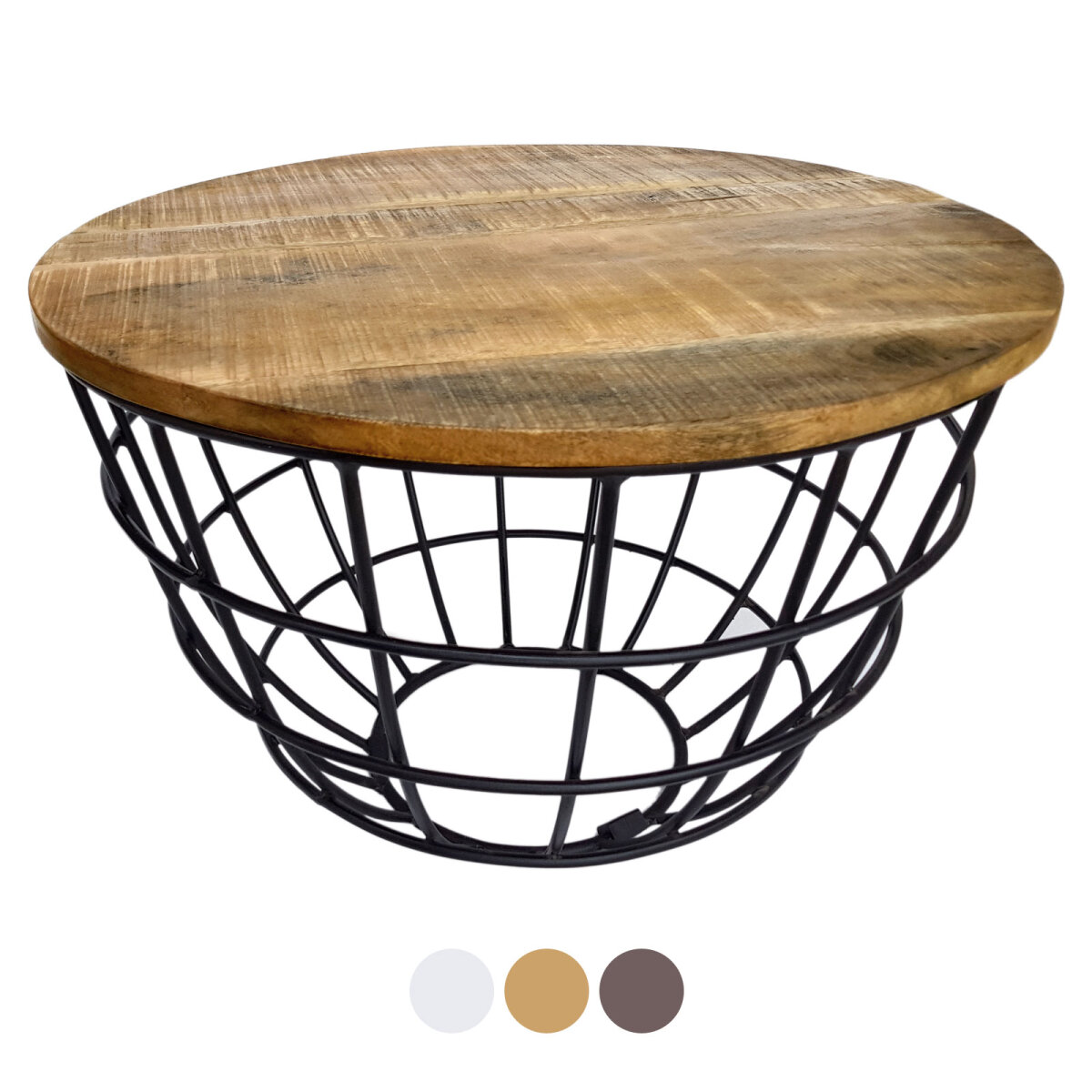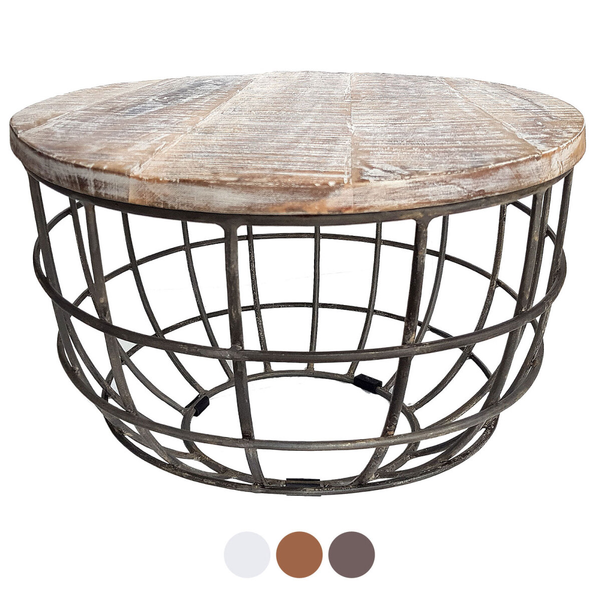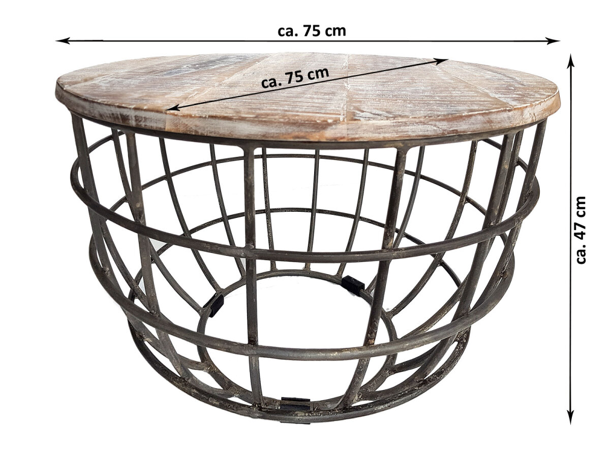- Couchtisch rund nachhaltig aus recyceltem Altholz mit Metall-Gitter-Gestell altsilber oder schwarz