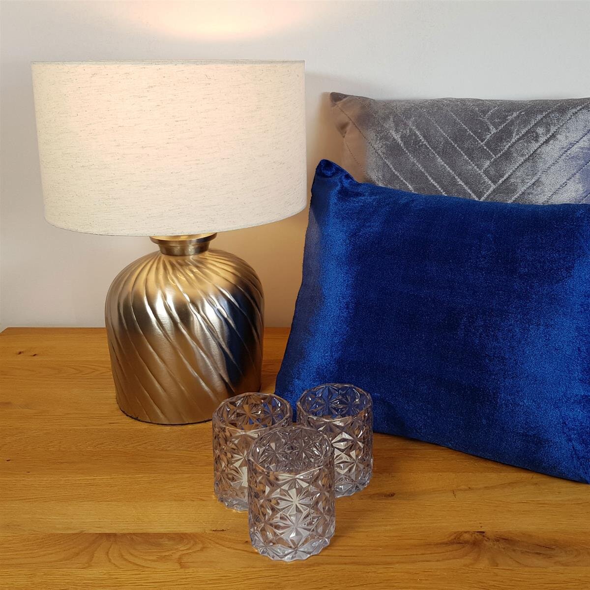 Unsere modernen und hochwertigen Tischlampen aus Metall sind echte Highlights für Ihre Räumlichkeiten. Sie haben einen gehämmerten strukturierten Metallsockel und einen Lampenschirm aus einem Baumwolle-/Leinengemisch. Diese Tischleuchten sind die perfekte Basis für eine gemütliche Lichtstimmung in allen Räumlichkeiten. Durch die gehämmerte Metall-Struktur und den Glanz in Silber oder Gold werden auf dem Leuchtensockel faszinierende Lichteffekte erzeugt. Erfreuen Sie sich über viele Jahre an diesen stilvollen und dekorativen Dekolampen.