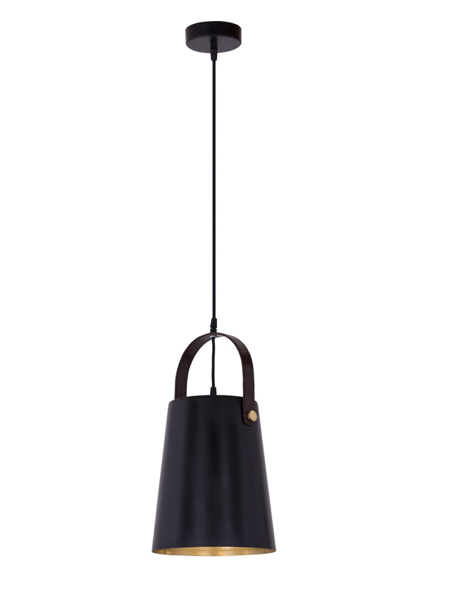 Pendelleuchte Metall mit Lederbügel Hängelampe Hängeleuchte Vintage