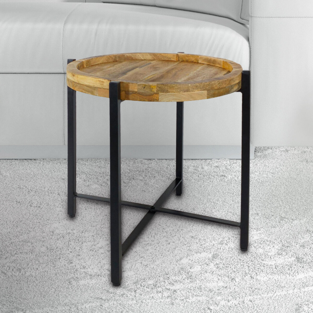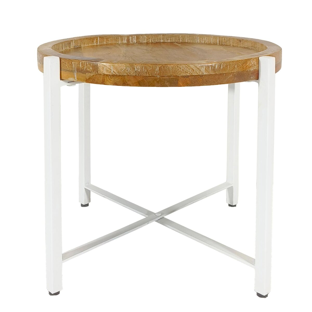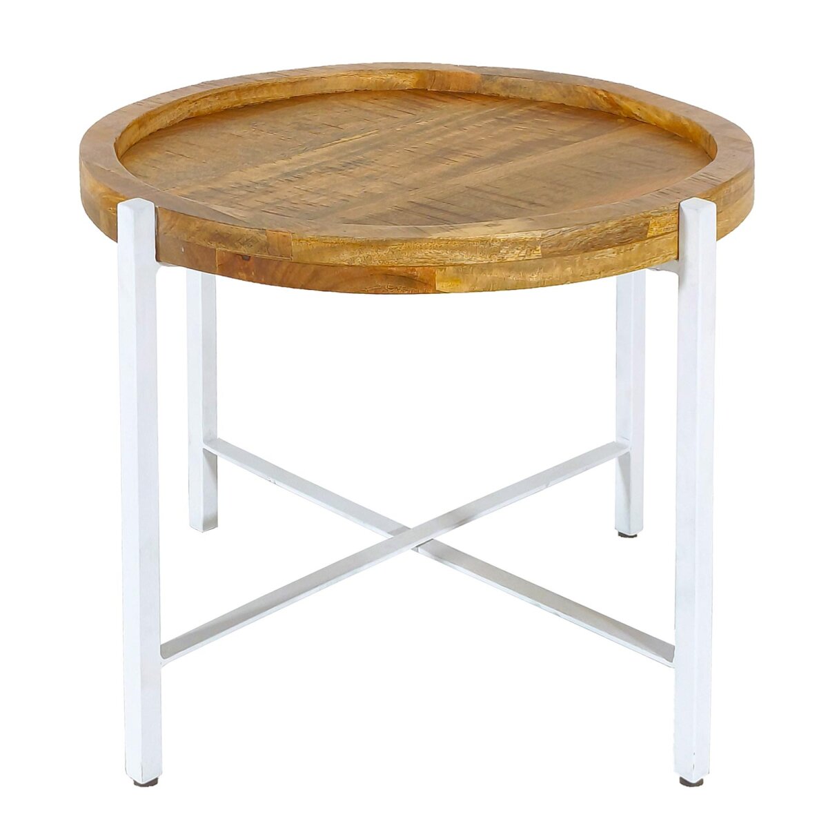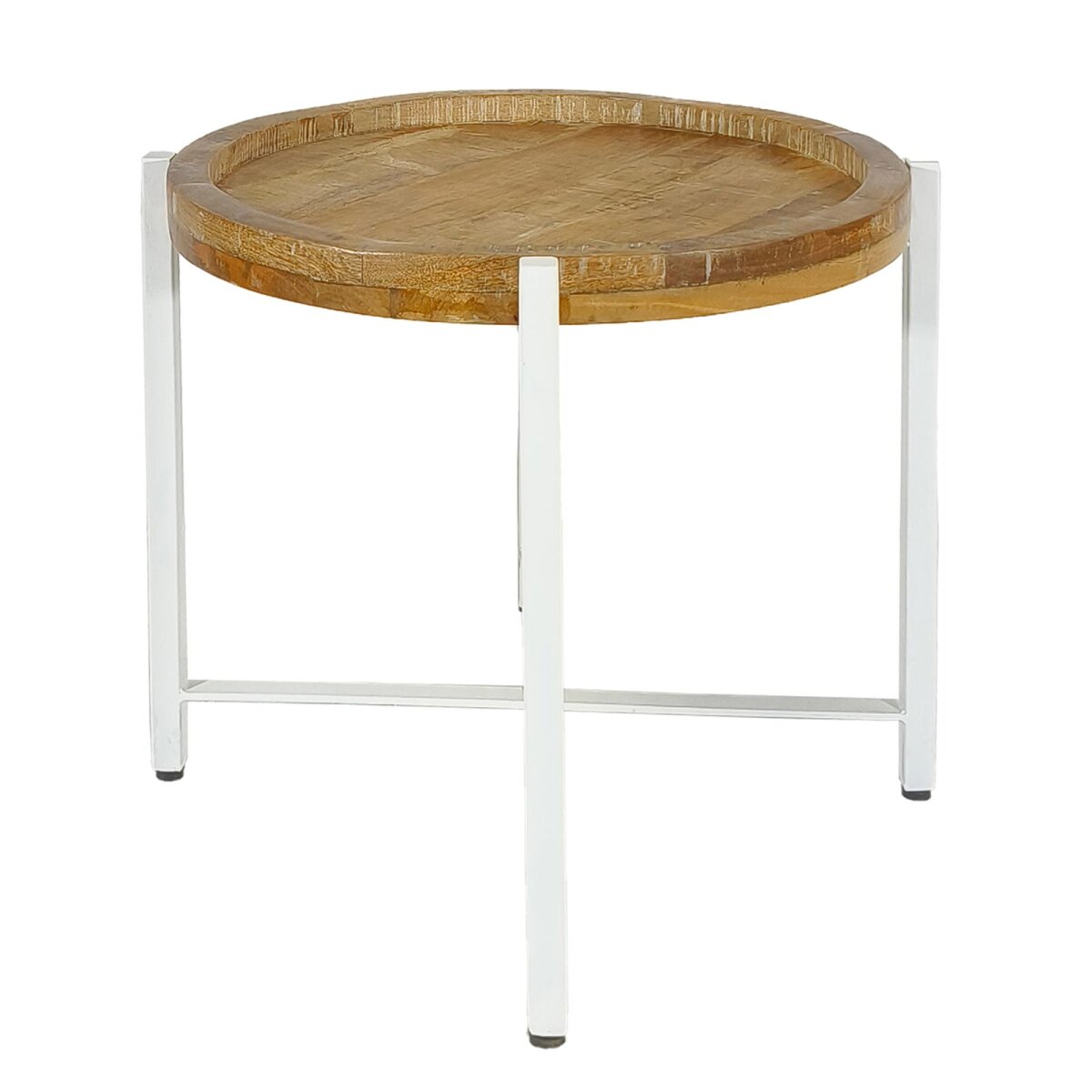 - Beistelltisch rund nachhaltig aus recyceltem Mango Altholz mit Metall-Gestell weiß oder schwarz matt