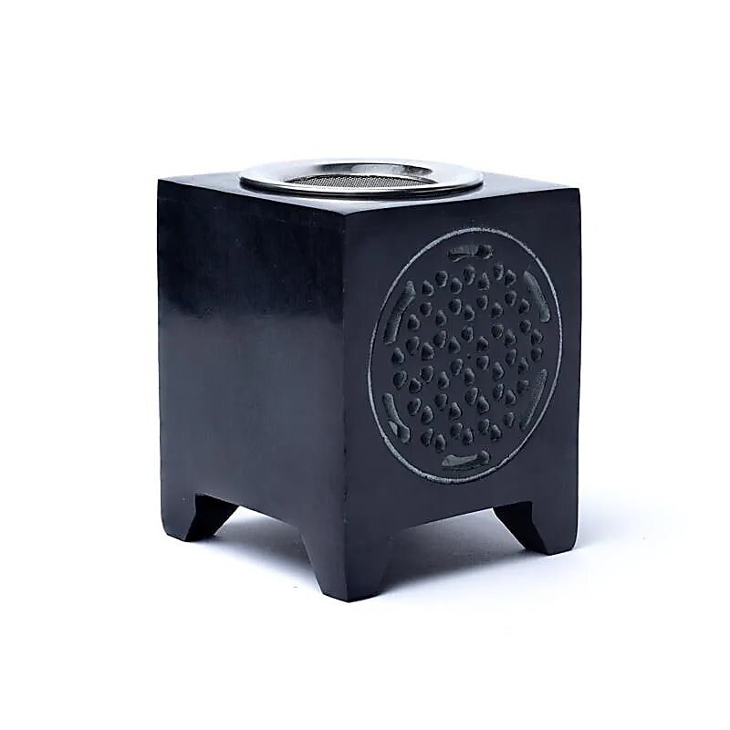Speckstein-Räuchergefäß mit Blume des Lebens-Symbol.