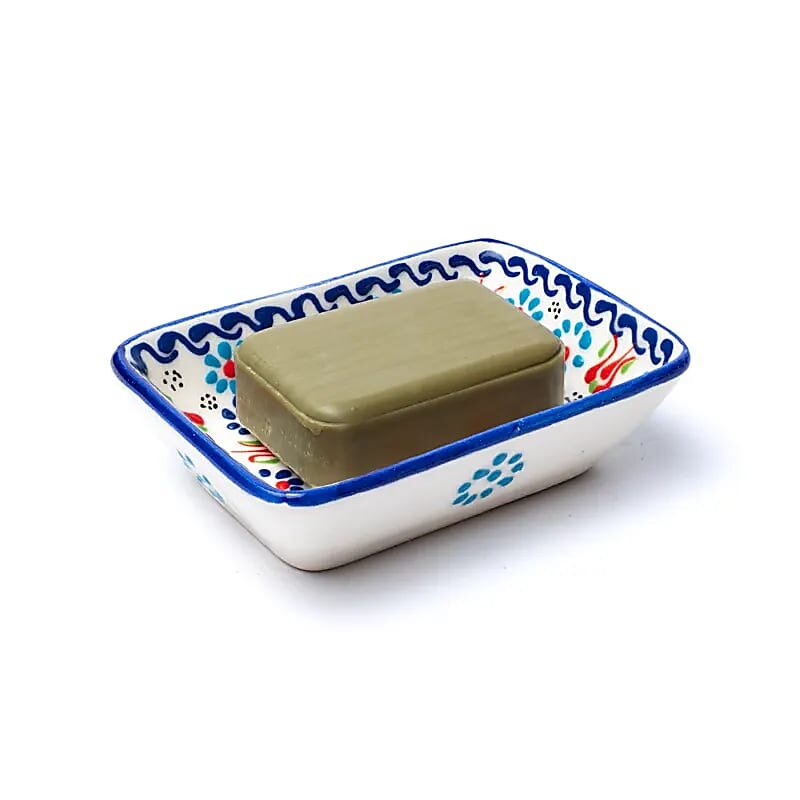 Osmanische Seifenschalen werden traditionell von Hand hergestellt und in alten Brennöfen in Göreme, Türkei, gebrannt. Die Malereien der osmanischen Seifenschalen erinnern an die berühmten Meißner Zwiebelmuster. Ottoman hat sich speziell für ein 3D-Muster entschieden, damit die Seife atmen kann, wenn sie in die Seifenschale gelegt wird.