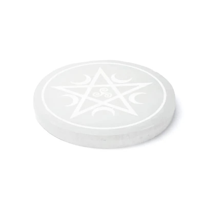 Eine Selenit-Aufladeplatte mit dem Symbol der Blume des Lebens ist perfekt für die Reinigung und Aufladung von Kristallen. Das runde Design und die subtile Gravur verstärken die energetischen Eigenschaften der Platte. Selenit wird für seine reinigenden Eigenschaften geschätzt.