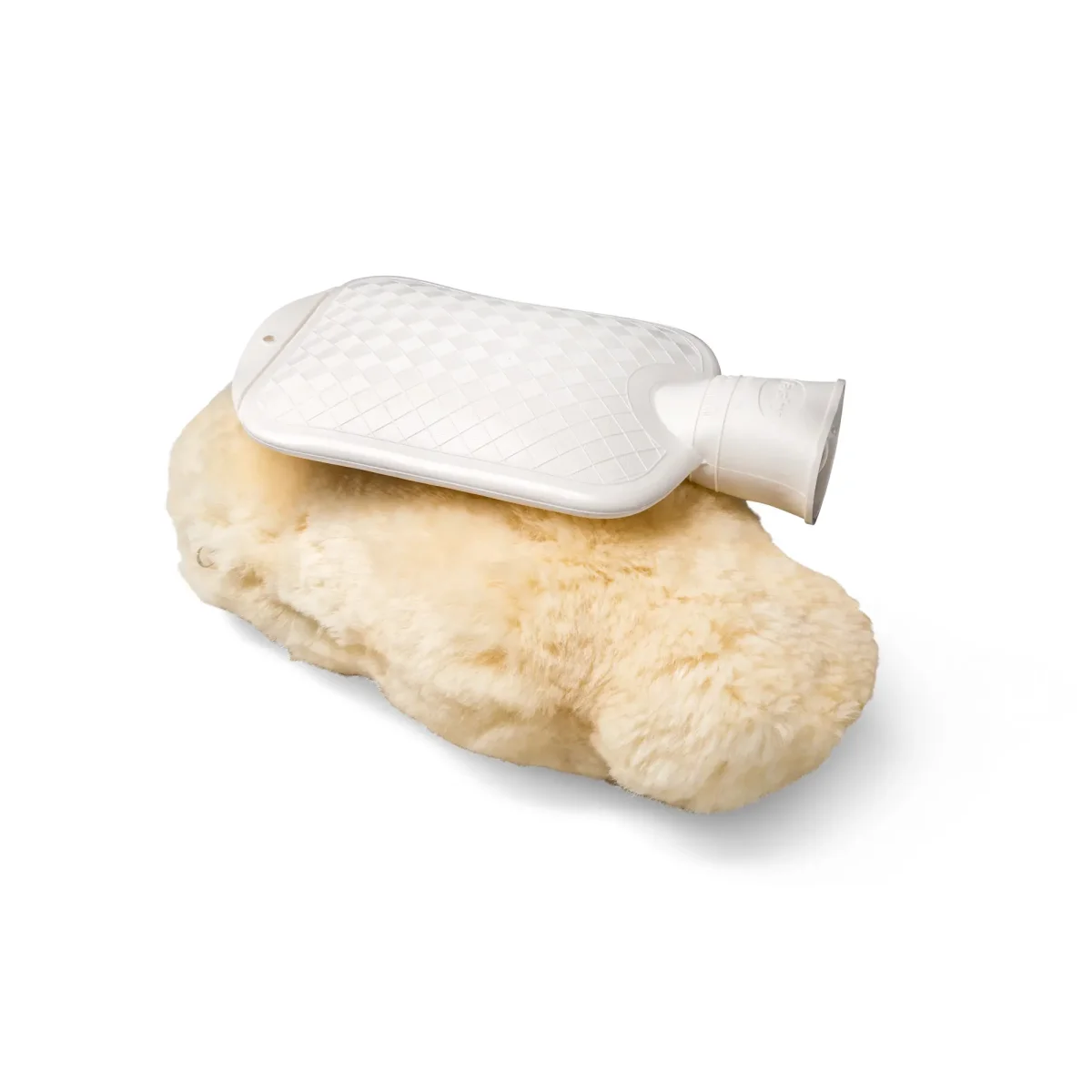 Kleine Wärmflasche mit Lammfellbezug im Überblick